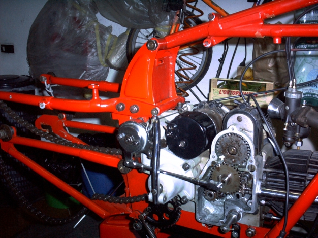 Acquistata assieme al Nettuno che si vede più avanti con documenti "strani" , bicolore, nel senso che era di due rossi diversi con strani rumori dal motore. Rivista totalmente di carrozzeria e risolti i rumori: erano consumati i rullini che poggiano sull'albero a cammes è stata reimmatricolata .... purtroppo con targa europea . Per una moto del 1939 quasi una sciagura!!
